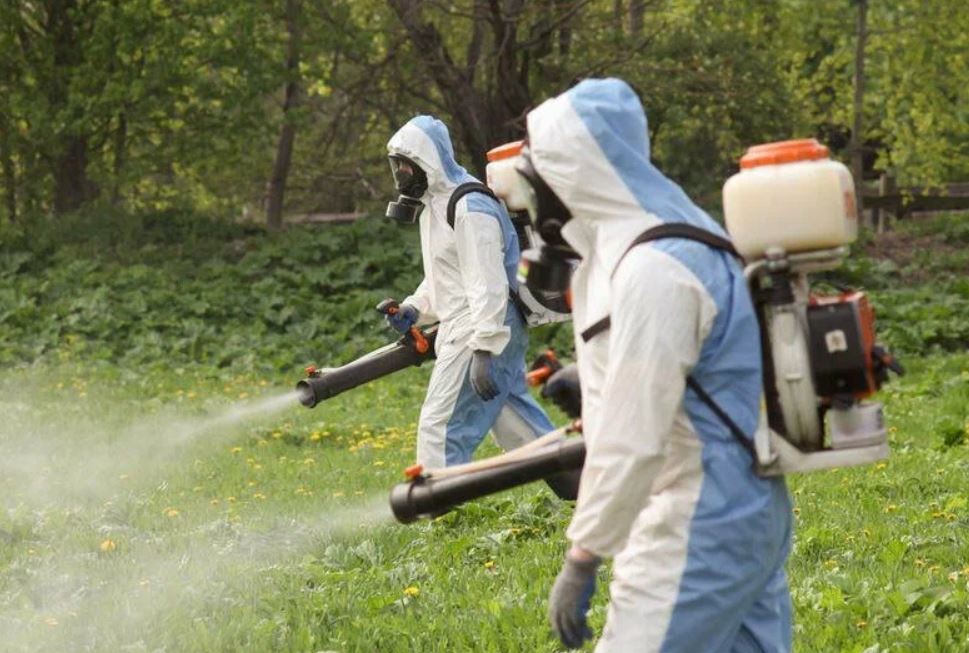 специалисты проводят дезинсекцию участка